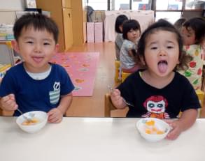 自宅でお父さんお母さんに読み聞かせをしてもらい、絵本に親しんでもらっています。